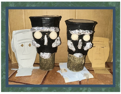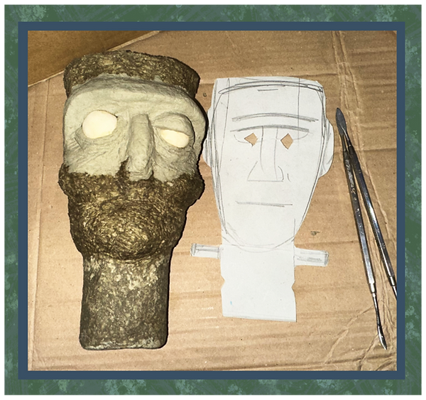 Corrugated cardboard and tin foil bulked out the shape of the monsters flat topped head.