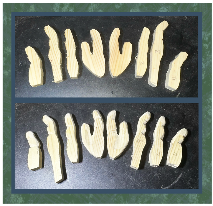 Stumps first tailored exactly to fit my finger , then PVA woodglue and fabric to strengthen and harden them to take heavy arms and hands.