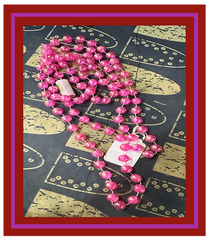 Katie / Cathy might have stayed unfinished for many more years, but she was saved by a string of very bright pink plastic beads in a charity shop.