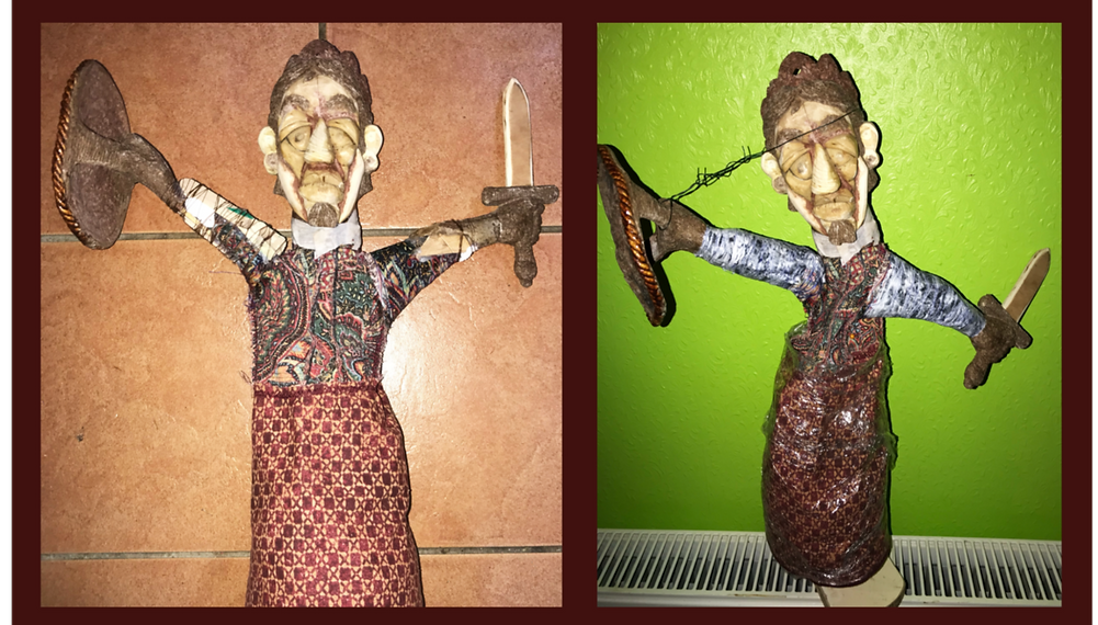 Certain props, like this hand and sword are achieved by a mix of plywood and pulp combination.